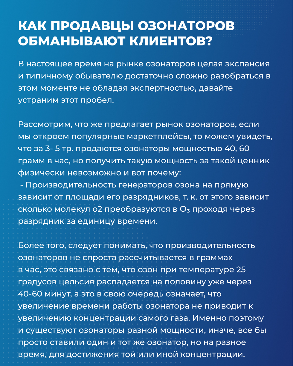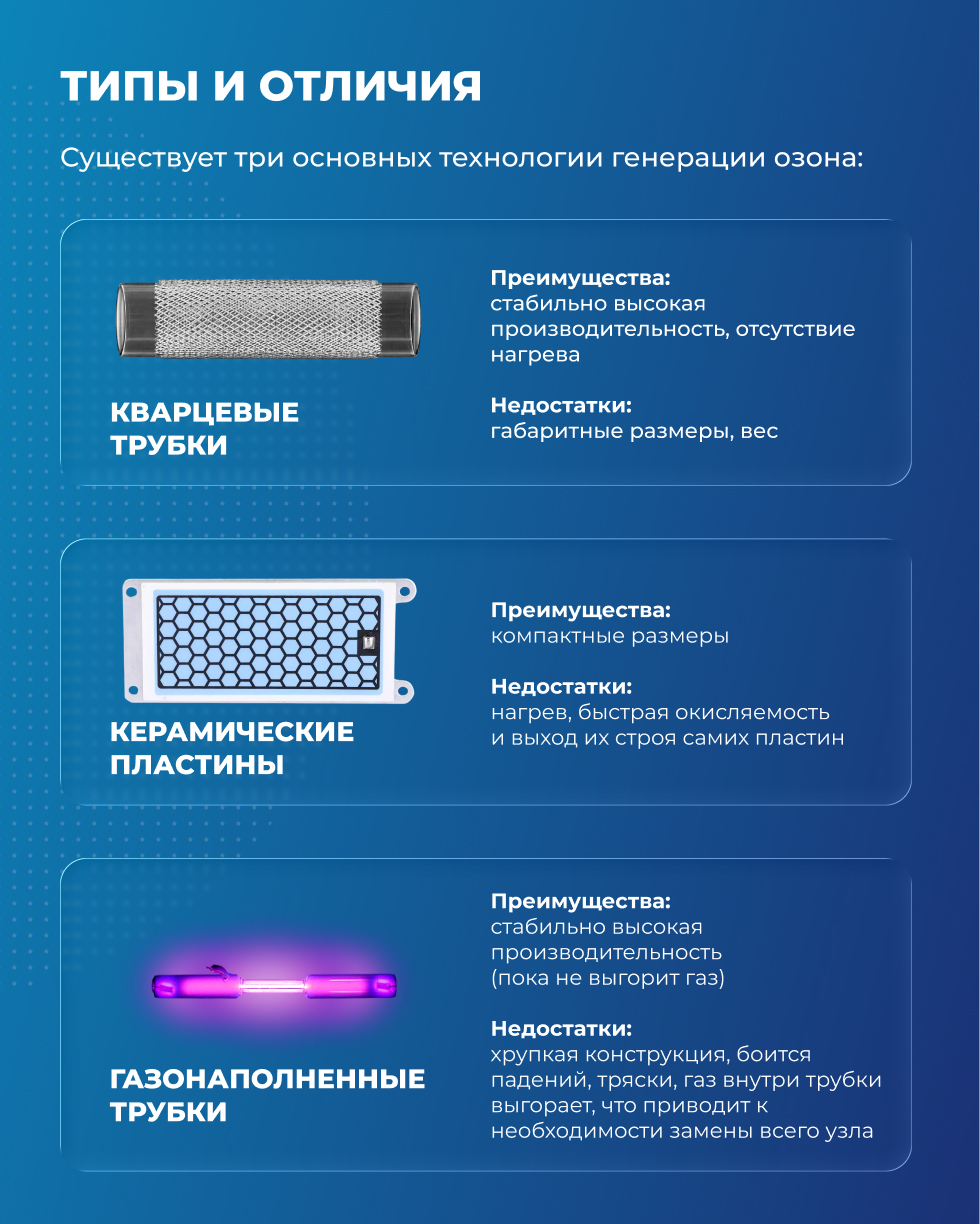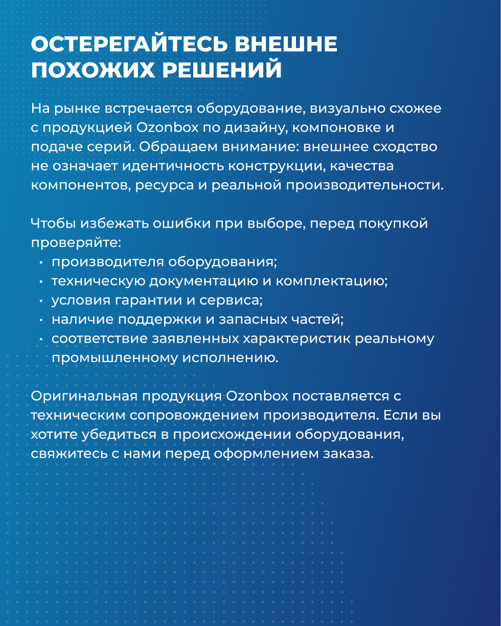 - Система контроля: Мониторинг концентрации O₃ в реальном времени