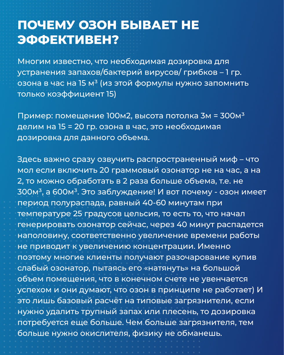 2. Остается ли запах после обработки? Нет. Озон окисляет аммиак и органические соединения, формирующие неприятный запах. После завершения цикла и распада озона (до 30 минут) помещение не имеет посторонних запахов.